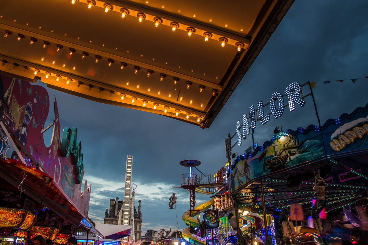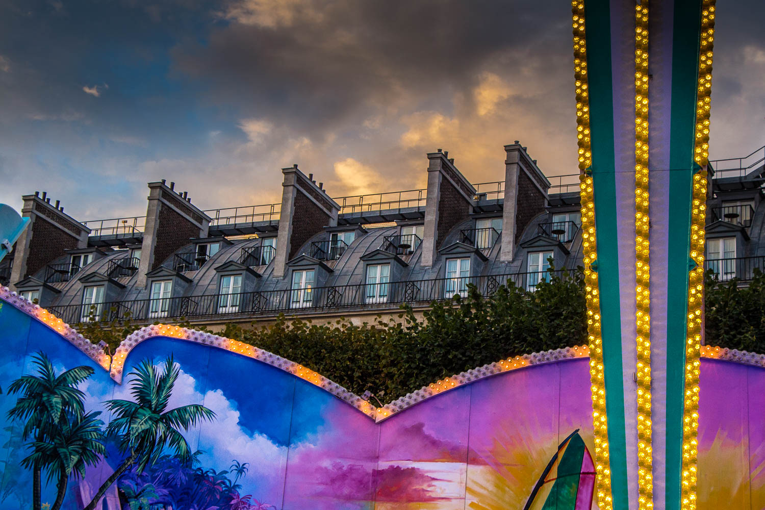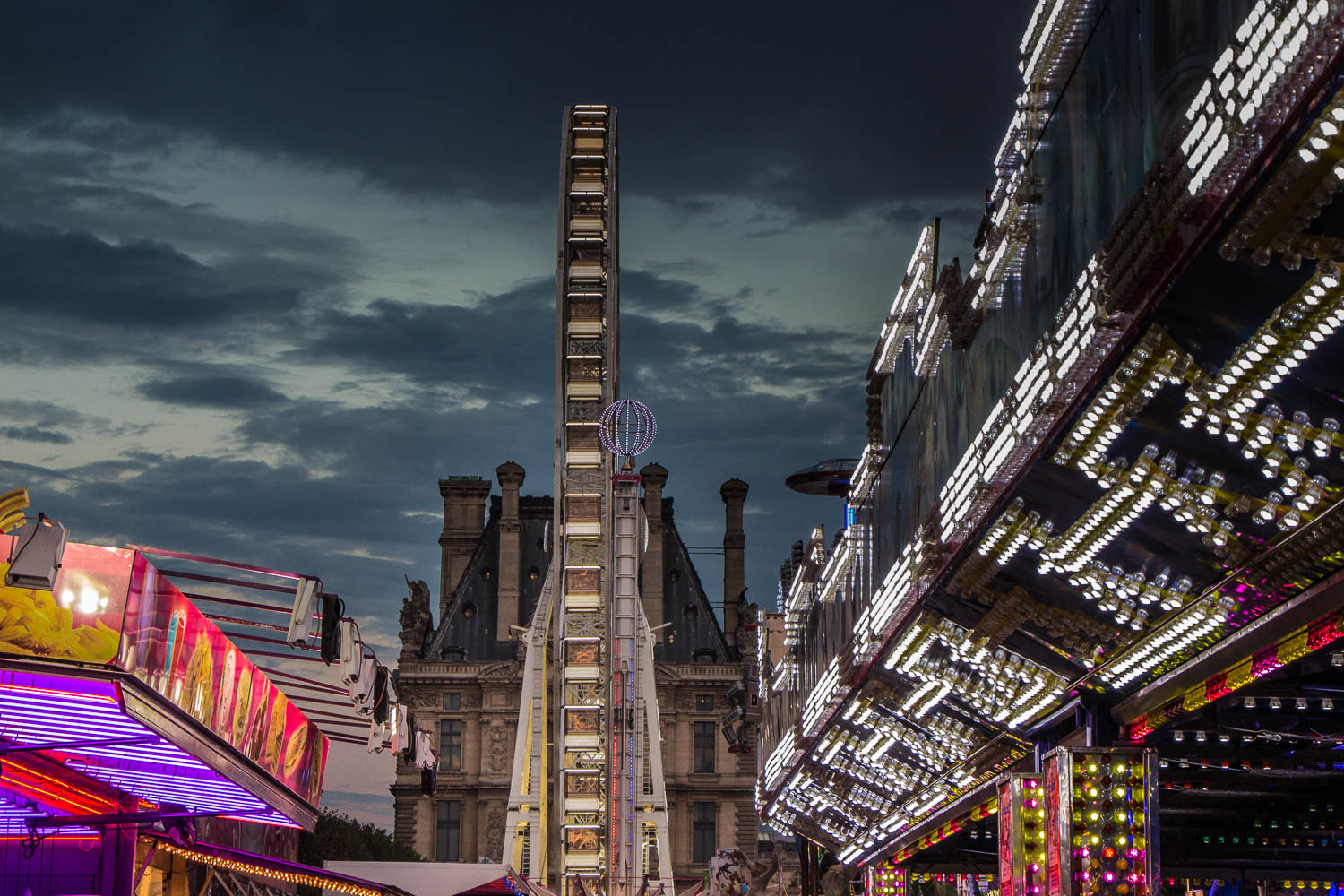 Le jardin des Tuileries opère la jonction entre la place de la Concorde et l'esplanade du Louvre. Enfant on y joue autour des grands bassins, plus grand on apprend à y flâner, saisi, où que le regard se pose, par tant de beauté et d'histoire(s). Une grande fête foraine y pose désormais chaque été ses tréteaux, y installe ses manèges et avec eux, ses cris, ses éclats de rire et de lumières.