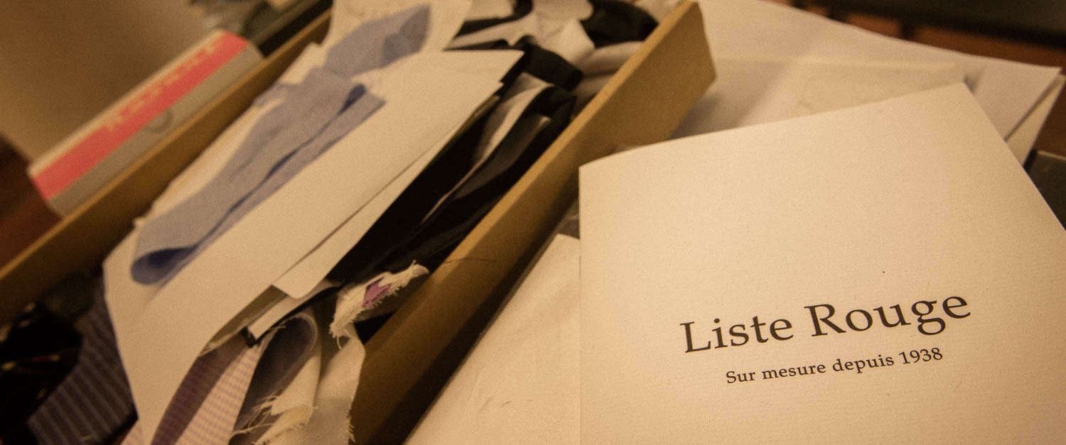 Depuis 1938, les chemises Liste Rouge sont confectionnées sur-mesure dans le même atelier normand, où la tradition du savoir-faire français continue d'être transmise. Le client en défini les matières, les finitions, les formes de cols et de poignet, jusqu'à la couleur du fil des boutonnières.